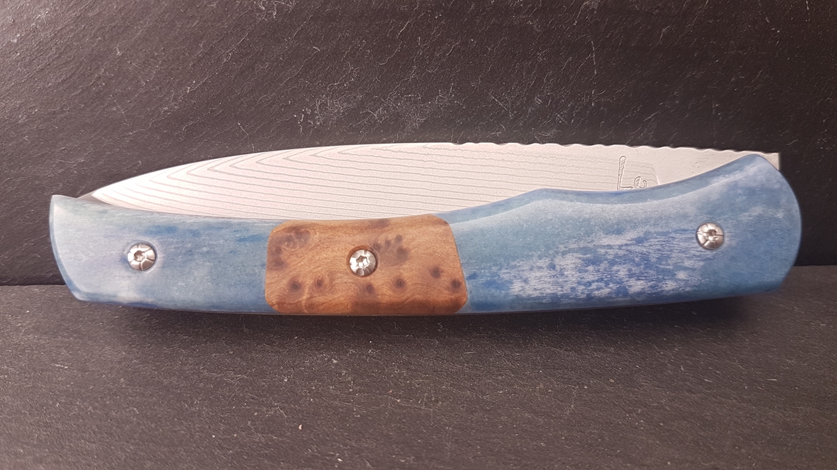 - Plaquettes en assemblage d'os de chameau stabilisé bleu et loupe de thuya